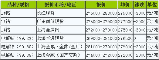 8月31日鈷價(jià)震蕩下跌,鈷市行情走弱,鈷價(jià)上漲動(dòng)力減弱,國際鈷價(jià)暫穩(wěn),國內(nèi)鈷市利好減弱利空加大。