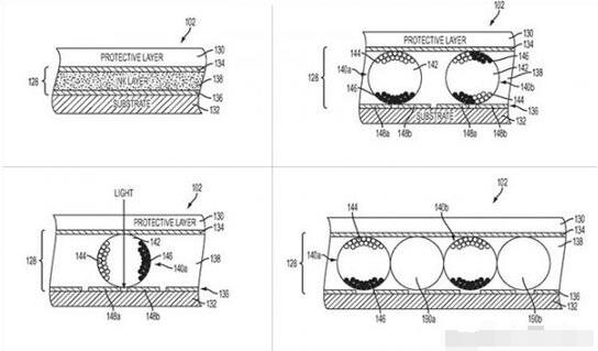 另外,專利還提到了許多目前發(fā)布的Touch Bar所不具備的更為炫酷的功能。例如,該功能允許觸控條根據(jù)設備底座或者應用程序的全屏顯示信息改變顯示顏色和紋理,以達到應用內容的全景式展現(xiàn)。甚至這一技術也可能應用在iPad上。