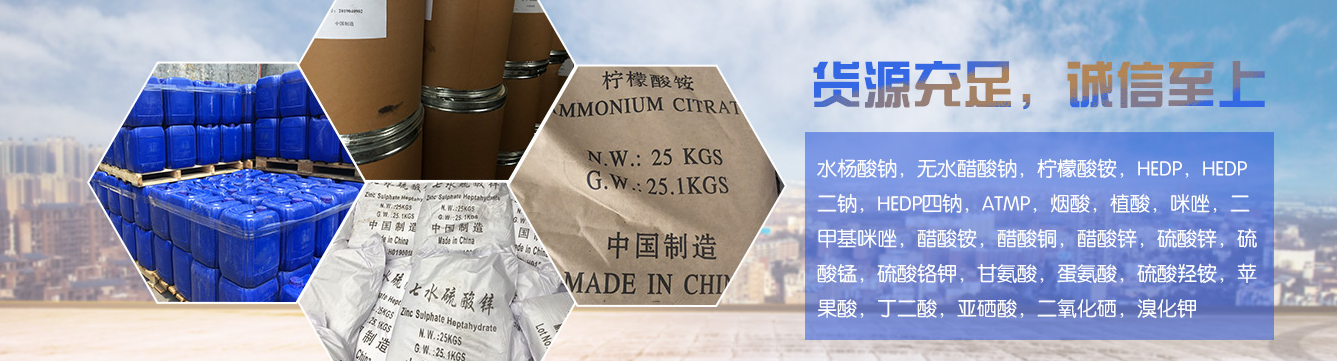 廣州市德力化工有限公司是一家集工、科、貿(mào)、研發(fā)、生產(chǎn)一體的綜合性高科技化工企業(yè)。本公司研發(fā)產(chǎn)品如今有:硫酸鉻鉀,鉻酸鉀,丙二酸,羥基乙酸,雙乙酸鈉,水楊酸鈉,磺基水楊酸,HEDP,HEDP二鈉,HEDP四鈉,ATMP,無(wú)水醋酸鈉,醋酸銨,醋酸鋅,醋酸銅,醋酸鉀,檸檬酸銨,植酸,煙酸,硫酸肼,硫酸聯(lián)氨,鉻酸鈉等產(chǎn)品。在華南城是一家專業(yè)從事電鍍、金屬表面處理、P