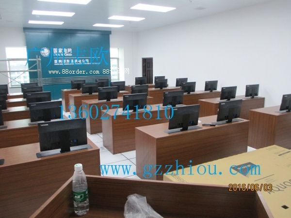 結(jié) 構(gòu):每張桌子配置2臺電動遙控液晶升降機(當時電腦時液晶顯示器自動重桌底升起且顯示器自動通電,當不使用顯示器時,顯示器自動隱藏于桌底),每一個位置都有一個電腦主機位,電腦桌前面設(shè)有檢修門,方便線路維修。
