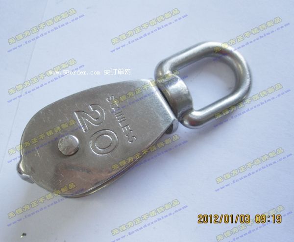 滑輪的輪子和轉(zhuǎn)圈是鑄造工藝的,板身是板材沖壓的,通過(guò)焊接而成的;喅3Ec繩子互相連用。