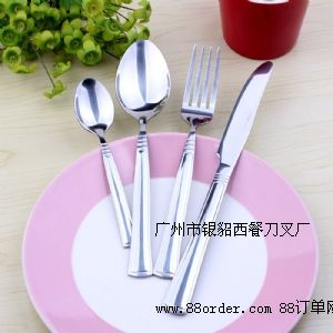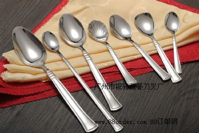 各種不銹鋼餐刀,餐勺,湯勺,牛油刀,牛排刀,水果叉,蛋糕叉,咖啡更,茶更,糖更,雪糕更等。產(chǎn)品選用