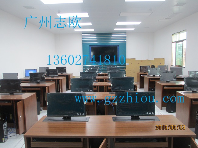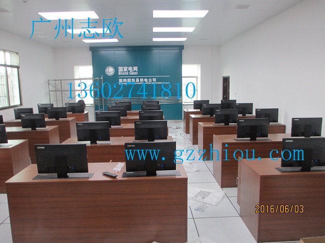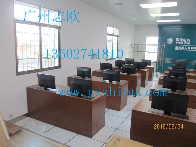 結(jié)  構(gòu):每張桌子配置2臺電動遙控液晶升降機(jī)(當(dāng)時電腦時液晶顯示器自動重桌底升起且顯示器自動通電,當(dāng)不使用顯示器時,顯示器自動隱藏于桌底),每一個位置都有一個電腦主機(jī)位,電腦桌前面設(shè)有檢修門,方便線路維修。