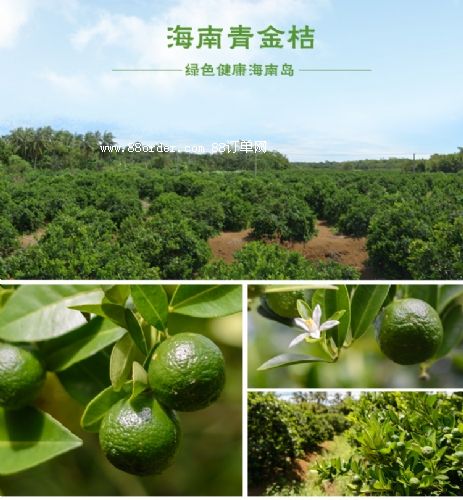 海南青金桔 (又名青桔、山桔、年桔、綠桔)英文:lime,海南人俗稱公孫桔、桔仔或酸桔,一顆平均在15克左右,每100克果肉內(nèi)含維生素c40~50毫克及維生素a、p和芳香油、類胡羅蘿卜素等多種物質(zhì),除鮮食外,金桔還可加工成果汁、蜜餞、罐頭、果脯、果醬、果酒等,用途之廣實為果中之王。
