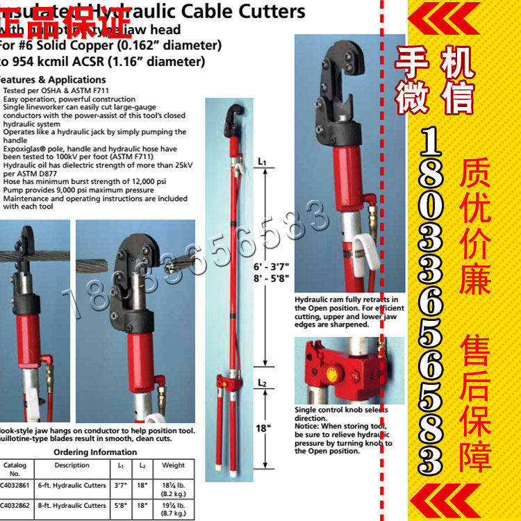 一個帶電作業(yè)人員可以輕易的切斷直徑的導(dǎo)線,操作的方式如同操作液壓千斤頂一般,只要輕輕搖動操作部位的手搖柄就可以完成作業(yè)
