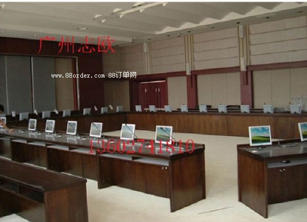 構:每張桌子配置2臺電動遙控液晶升降機(當時電腦時液晶顯示器自動重桌底升起且顯示器自動通電,當不使用顯示器時,顯示器自動隱藏于桌底),每一個位置都有一個電腦主機位,電腦桌前面設有檢修門,方便線路維修。