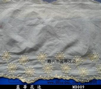 我公司主營的花邊品種有純棉花邊,蕾絲花邊,蕾絲花邊面料,水溶繡花,網(wǎng)布、棉布繡花,盤帶花邊,手工鉤花以及領(lǐng)花等,花邊花型可根據(jù)客戶來樣訂做。產(chǎn)品適用于女式時裝、童裝、內(nèi)衣、睡衣、家紡、家居服飾等。