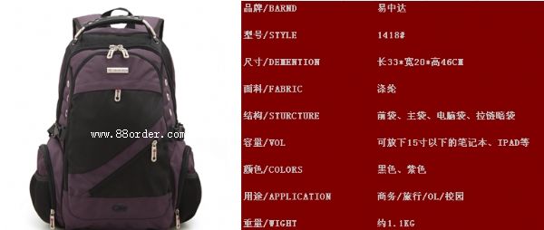 【產(chǎn)品名稱】廠家瑞士軍刀雙肩包筆記本電腦包1418電腦背包商務(wù)旅行背包