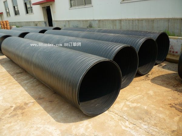 雙平壁鋼塑復合纏繞排水管是以聚乙烯(pe)為主要原材料預制成"t"型板帶,板帶在管道成型機上纏繞并熔接成管道,同時,將鍍鋅鋼帶扎成的w型鋼帶嵌入兩板帶之間的槽中,同時在鋼帶上包覆pe成為管道外壁的第三代新型鋼塑排水管。 雙平壁鋼塑排水管技術體系已經取得7項中國專利,并通過國家化學建材測試中心的檢測。