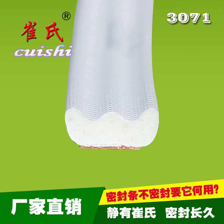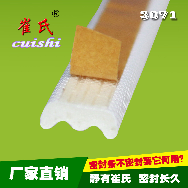 包覆式密封條,在防盜門、銅門、不銹鋼門的金屬門上的黏貼效果極佳,可適應(yīng)戶外四季溫度的變化,在操作安裝上不僅可節(jié)省30%的生產(chǎn)效率,同時更是便捷可行。