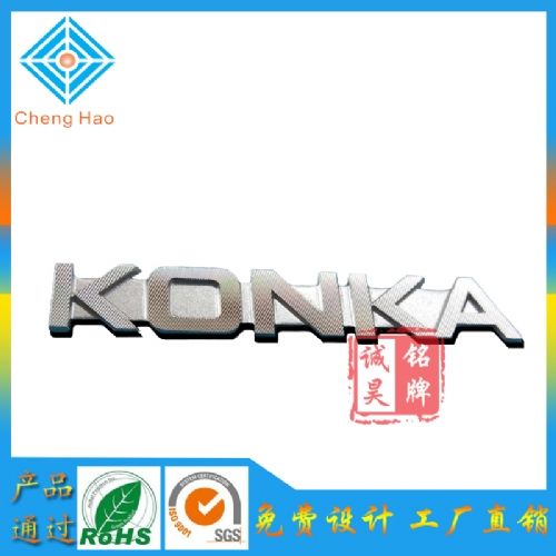 2凹字工藝:我們做壓鑄鋁標(biāo)牌之前先要開(kāi)一套五金壓鑄模具和菲邊模具,模具上面把雕刻字體和logo, 雕刻字體和logo是凸起來(lái)在模具表面,將模具加熱處理好之后,就可以用于制作壓鑄鋁標(biāo)牌,將鋁板原材料油在模具表面通過(guò)油壓機(jī)擠壓成形,于凸字工藝成反比,這一種工藝可以很好把壓鑄標(biāo)牌表現(xiàn)出來(lái)。如銀面黑字:此類鋁合金商標(biāo)與黑底銀白字商標(biāo)工藝剛好相反,正常制作方法為字體和logo下凹,標(biāo)牌整體噴黑色油漆后再用高光機(jī)將標(biāo)牌表面油漆雕掉,剩下的就是下凹字體處的油漆.標(biāo)牌當(dāng)然也可拉紋處理.(拉紋也就是用拉紋機(jī)將標(biāo)牌表面的油漆拉掉,拉紋后再做一下氧化處理,這樣商標(biāo)更能抗氧化及臟污.) 。凹下去的字體的顏色你也可以選擇,我們都可以幫你調(diào)出來(lái)你要的顏色。