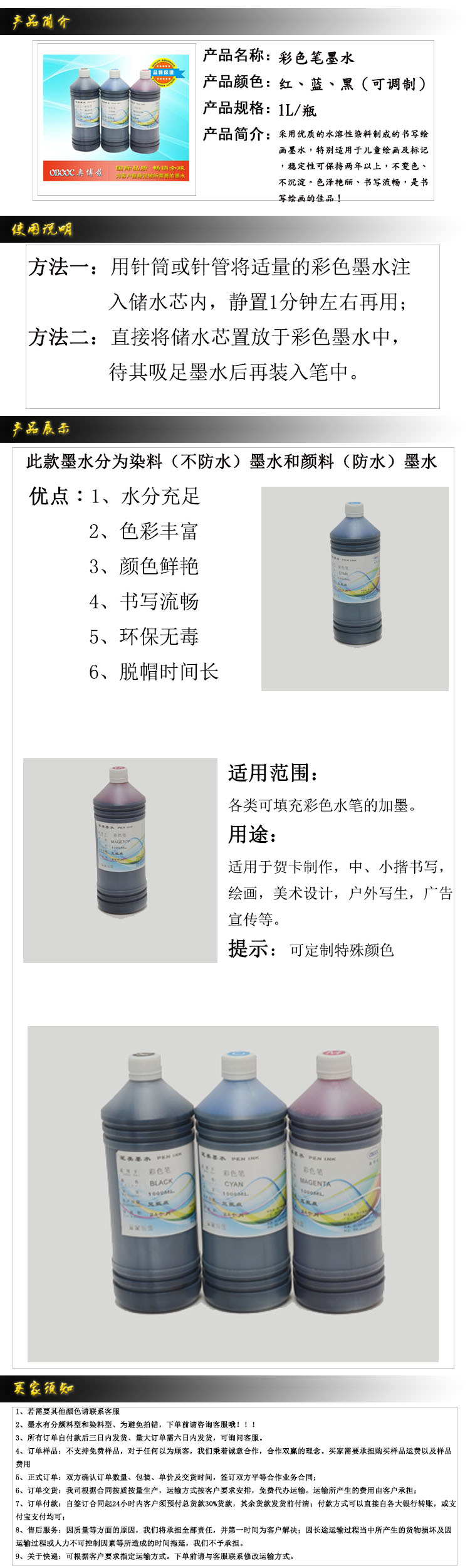 兒童繪畫水彩筆專用墨水 顏料墨水 可填充彩色防水墨水