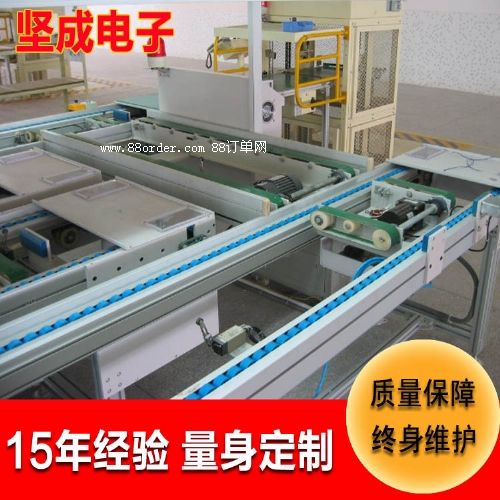 3、鏈條和滾輪傳送差速工裝板鋼板、工程塑料板、木板等框架材質(zhì)鋁型材、碳鋼帶電設(shè)置線體內(nèi)設(shè)導(dǎo)電輪,工板上設(shè)導(dǎo)電排,可實(shí)現(xiàn)帶電輸送使用電源或三相380v 50hz