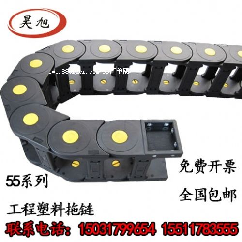 拖鏈外形似坦克鏈,由眾多單元鏈節(jié)組成,鏈節(jié)之間轉(zhuǎn)動(dòng)自如。相同系列的拖鏈內(nèi)高、外高、節(jié)距相同,拖鏈內(nèi)高、彎曲半徑r可有不同的選擇。單元鏈節(jié)由左右鏈板和上下蓋板組成,拖鏈每節(jié)都能打開,裝拆方便,不必穿線,打開蓋板后即可把電纜、油管、氣管等放入拖鏈內(nèi)。
