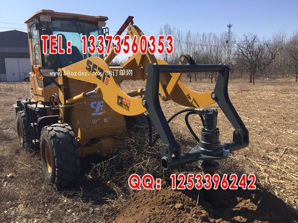 鉆洞機(jī)水泥電桿鉆孔機(jī)裝載機(jī)帶挖坑機(jī)挖電桿洞的工具配備動(dòng)力:26-50型裝載機(jī)