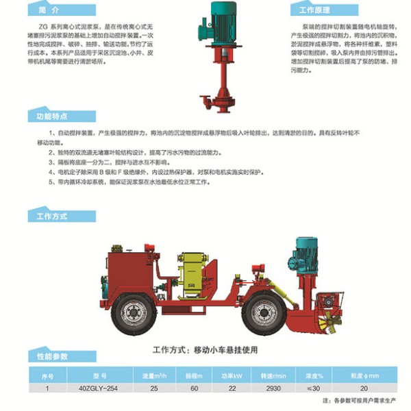 天科zg系列礦用渣漿泵,是在傳統(tǒng)離心式無堵塞排污泥漿泵的基礎(chǔ)上增加自動攪拌裝置。完成攪拌、破碎、抽排、輸送功能,節(jié)約了運(yùn)行成本。本系列產(chǎn)品適用于采區(qū)沉淀池、