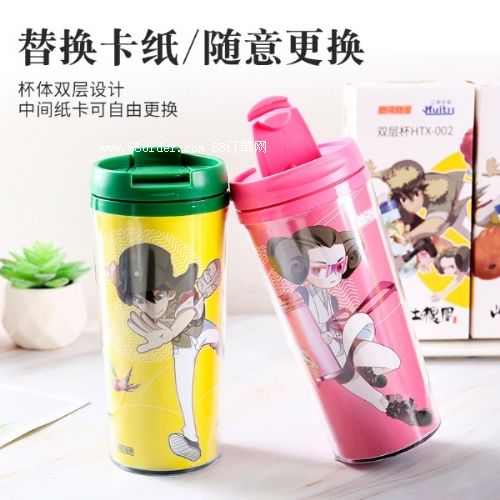 一款雙層保溫杯。這款產(chǎn)品中間隔層的動(dòng)漫插紙可以實(shí)現(xiàn)隨意更換,可以隨時(shí)根據(jù)自己的心情和喜好選取不同的插紙。心情不好?換張插紙。不想雷同?換張插紙。審美疲勞?換張插紙。這樣一款采用了食品級(jí)pp材質(zhì)并且配有炫彩漫畫(huà)人物的雙層保溫杯,可以成為你在辦公桌上的點(diǎn)綴品,餐桌上的裝飾品,愜意的把玩品,生活的陪伴品。