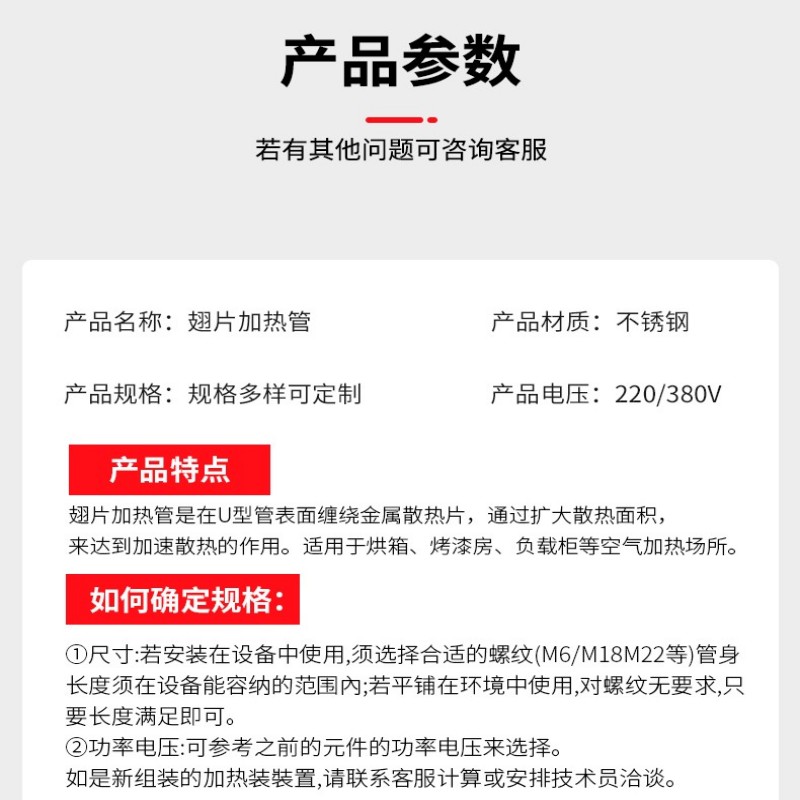 定制干燒翅片加熱管U/WM型電熱管烤漆房烘箱高溫發(fā)熱管220