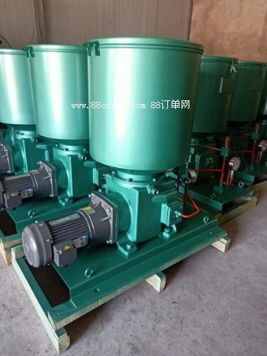 干油智能潤滑系統(tǒng)的動力源,潤滑油經(jīng)過泵站向主油管、向電控分油箱、向支油管和潤滑點(diǎn)輸送潤滑脂。油路輔助裝置(過濾器、溢流閥、調(diào)壓閥,壓力表等), 潤滑泵只在給油時啟動,其啟停由plc控制;主/備兩臺互為備用,當(dāng)其中的一臺油位低時,自動切換到另一臺,同時為油位低的油泵進(jìn)行自動補(bǔ)油。