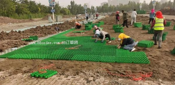 2. 每塊植草格均有環(huán)節(jié)扣,鋪裝時(shí)環(huán)環(huán)相扣。植草格鋪裝完成后,用小型壓路機(jī)或平板振動(dòng)機(jī)在植草格表面來回壓一次,有不平整的地方需進(jìn)行修整,