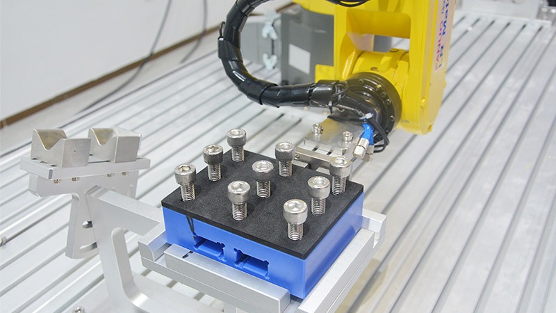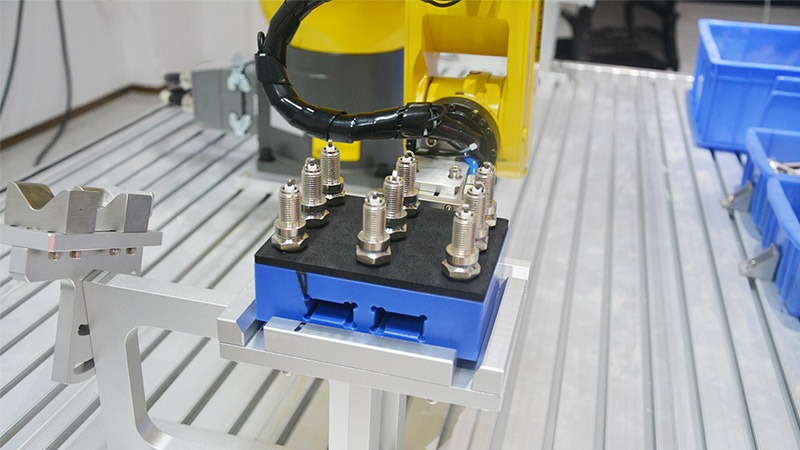 富唯智能3d視覺引導火花塞和螺釘無序抓取上料,通過3d視覺識別定位,引導機器人自動完成上料,可以調整工件的朝向保證一致性。代替人工,降低成本,提高設備穩(wěn)定性,實現(xiàn)自動化生產。