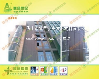 聯(lián)合技術(shù)隔熱鋁板由工廠預(yù)制裝配幕墻構(gòu)件,現(xiàn)場(chǎng)只需采用金屬幕墻通用的干掛施工即可完成,又大大消除了施工過(guò)程的火災(zāi)隱患,聯(lián)合世紀(jì)隔熱鋁板將建筑外圍結(jié)構(gòu)的裝飾系統(tǒng)與保溫系統(tǒng)完美地整合一體,可以大幅提高施工效率。
