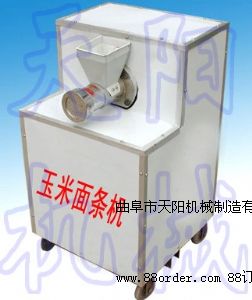 多味雜糧面條機(jī) 玉米長壽面機(jī)玉米等粗雜糧富含營養(yǎng)成份,蛋白質(zhì)豐富,經(jīng)常食用可健身強(qiáng)體。隨著人們飲食觀念向“少精多粗,少葷多素”改變,對食品的要求從好吃轉(zhuǎn)向天然、營養(yǎng)、保健,吃粗糧、吃雜糧成為人們追求健康保健的新食尚。曲阜天陽經(jīng)過多年研制的玉米面條機(jī),生產(chǎn)出的玉米金絲面符合現(xiàn)代人的飲食習(xí)慣。玉米金絲面食法:將面條涼水下鍋,水開后沸煮6-8分鐘撈出,用涼水過涼,可做打鹵面、蔬菜面、火鍋面及炒面。天陽玉米面條機(jī)生產(chǎn)純玉米面條筋道耐煮,口感清香.鮮美.滑爽細(xì)膩,常吃不厭。煮.涮.炒.涼面.湯面等均可。天陽玉米面條機(jī)生產(chǎn)的玉米面條色澤金黃,筋道耐煮、滑爽細(xì)膩、玉米香味、別具一格,獨(dú)占面食市場先機(jī)。玉米面條機(jī)投資分析(以玉米加工為例) 1、設(shè)備投資:玉米面條機(jī)約需3000-7000元左右。 2、生產(chǎn)成本:生產(chǎn)0.5公斤玉米面條的成本是在原料價(jià)格上加0.2元(電費(fèi)、人工工資)。目前袋裝0.25公斤玉米面條在超市可賣到2.4元左右,在農(nóng)貿(mào)市場可賣到2元左右。按生產(chǎn)0.5公斤玉米面條毛利1元計(jì)算,玉米面條機(jī)可日生產(chǎn)250--1000公斤,產(chǎn)品全部售出可贏利500-2000元。 三、經(jīng)營參考 1、來料加工 一般加工0.5公斤面條可收0.4元左右的加工費(fèi)。還可用玉米、小麥等兌換五谷雜糧面條。如果再添玉米脫皮機(jī)、粉碎機(jī)搞一條龍加工服務(wù),還可以把脫下來的糠皮喂豬。 2、家庭作坊白天生產(chǎn)面條、粉條和米線,利用早晚時(shí)間騎車按訂單送貨上門,主要服務(wù)對象是賓館、酒店、糧油店及超市。 3、市場銷售:可在城鄉(xiāng)農(nóng)貿(mào)市場租一個(gè)攤位,現(xiàn)做現(xiàn)賣;可自家經(jīng)營一個(gè)特色粗糧小吃部,或在已有飯店的基礎(chǔ)上,增加經(jīng)營項(xiàng)目。單機(jī)型號與價(jià)格:TYG-A型玉米面條機(jī)時(shí)產(chǎn)50-60公斤,動力2.2KW(220V),價(jià)格2300元,TYG-C型時(shí)產(chǎn)100-120公斤,動力7.5KW,價(jià)格3600元。TYG-D型玉米面條機(jī)時(shí)產(chǎn)150-200公斤,動力7.5-11KW,價(jià)格7580元。成套玉米面條機(jī)(由脫皮機(jī)、磨粉機(jī)、拌面機(jī)、玉米面條機(jī)組成)型號與價(jià)格:TYG-AZ型(照明電型)日產(chǎn)800斤,總功率9KW,價(jià)格5780元,TYG-BZ型(通用型)日產(chǎn)2000斤,總功率24KW,價(jià)格10360元,TYG-CZ型(高產(chǎn)型)日產(chǎn)3200斤,總功率27.5KW,價(jià)格14600元。天陽機(jī)械公司張杰歡迎致電13181307932 18953731698 QQ531079582咨詢
