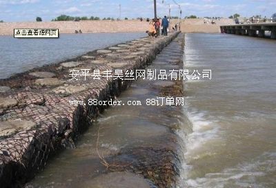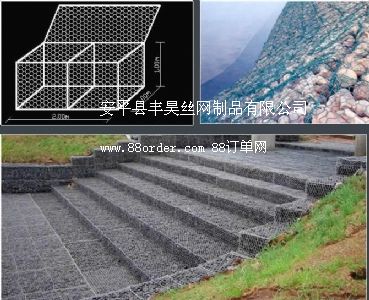 金屬線材編織的角形網(wǎng)(六角網(wǎng))制成的網(wǎng)箱 箱型石籠由大規(guī)格六角網(wǎng)聯(lián)結(jié)而成,施工中只需將石塊裝入籠中封口即可 |