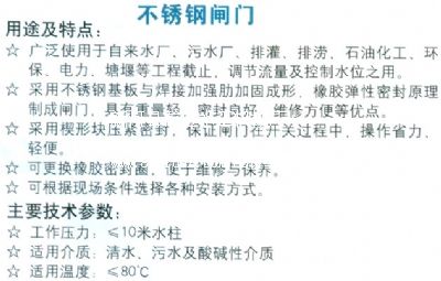 pzm不銹鋼閘門性能表