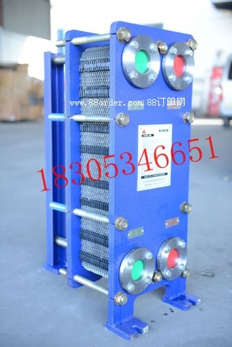 板式換熱器由高效傳熱波紋板片及框架組成。板片由螺栓夾緊在固定壓緊板及活動壓緊板之間,在換熱器內部就構成了許多流道,板與板之間用橡膠密封。壓緊板上有本設備與外部連接的接管。板片用優(yōu)質耐腐蝕金屬薄板壓制而成,四角沖有供介質進出的角孔,上下有掛孔。人字形波紋能增加對流體的擾動,使流體在低速下能達到湍流狀態(tài),獲得高的傳熱效果。并采用特殊結構,保證兩種流體介質不會串漏.