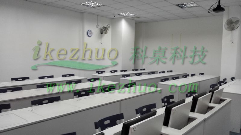 科桌翻轉電腦桌主要應用于各種大型會議室,學術報告廳,計算機教室,多媒體教室、多媒體會議室、多媒體電子教室、多媒體電教室、機房、培訓中心,展廳內及多功能會議廳等。普通教室與計算機教室模式相互切換快速,不阻礙老師與學生之間目光交流