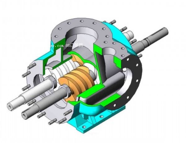 htsns系列三螺桿泵在供熱設(shè)備中用做燃油泵、燃油供應(yīng)和輸送泵;在機(jī)械工業(yè)中用做液壓、潤(rùn)滑和遙控馬達(dá)泵;在化學(xué)石油和食品工業(yè)中用做裝載、輸送和供液泵;在船舶上用做輸送、增壓、燃油噴射和潤(rùn)滑油泵以及船用液壓裝置泵。二、結(jié)構(gòu)特點(diǎn)
