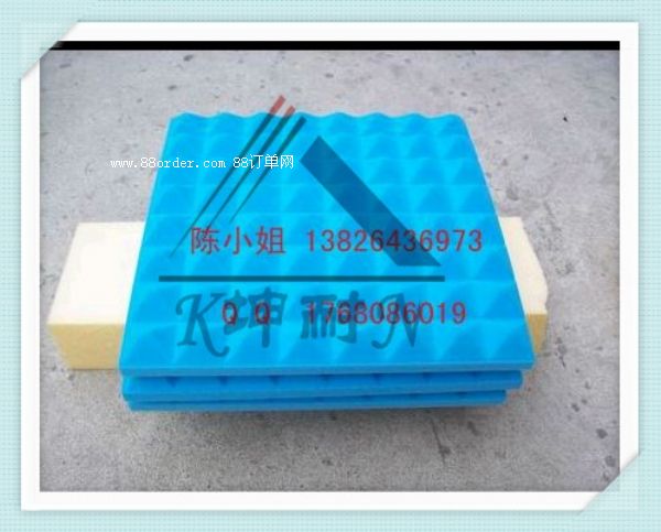 廣州坤耐建材有限公司生產的波紋吸音海綿呈金字塔形:是由高密度海綿做成,有良好的聲學特性,美化作用通過聲波在海綿內的來回反射吸收低至500hz以上頻率的聲音,降低室內反射聲的干擾和回響提高聲音的純度。其最大特點是:四棱錐的外形還提供擴散效果,這會讓你的聲音更加的有活力.