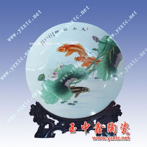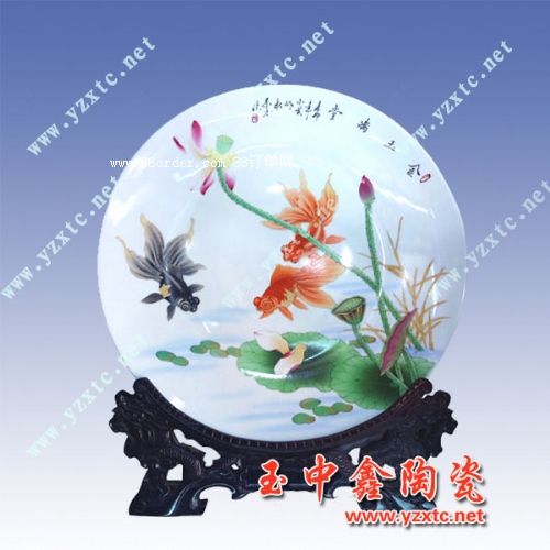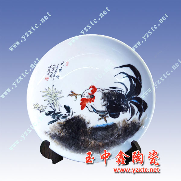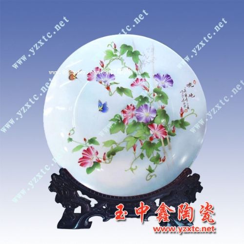 青花是單一的色彩,用單一的色彩去體現(xiàn)豐富的內(nèi)容。這在手法的運用上,往往需要借助一些青花以外的東西來達到。而這青花以外的東西,就是瓷的“白”。青花正是藍、白之間的藝術(shù)。我們要用青花去描繪山水,正是運用了瓷的白,才能顯現(xiàn)出山水的立體感和層次感。除此以外,當今許多現(xiàn)代的畫師也還常常運用點睛之筆來體現(xiàn)它的韻味。如畫荷塘的一角,對于荷花,常常以紅色來點綴。又如在荷葉上畫一只蜻蜓,對蜻蜓的眼睛,用黃色來點綴。這種點綴使整個構(gòu)圖顯得豐滿和有立體感、層次感,也增加了它的韻味。當然青花陶瓷紀念盤構(gòu)圖的立體感和層次感,也可以通過用色的濃淡來體現(xiàn)。使單色調(diào)呈現(xiàn)在人們面前的是一個完整、生動、豐滿的畫面,所以陶瓷紀念盤,是一個表達藝術(shù)和情感的載體,也是一種心靈寄語的永恒,在陶瓷紀念盤上面燒制您心中的圖案和美好的寄語來表達給友人給親人的一種美好的祝福。
