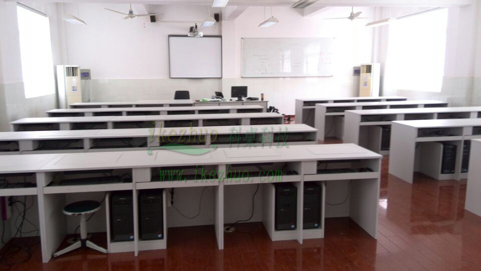 科桌翻轉(zhuǎn)電腦桌主要應(yīng)用于各種大型會議室,學(xué)術(shù)報告廳,計算機(jī)教室,多媒體教室、多媒體會議室、多媒體電子教室、多媒體電教室、機(jī)房、培訓(xùn)中心,展廳內(nèi)及多功能會議廳等。普通教室與計算機(jī)教室模式相互切換快速,不阻礙老師與學(xué)生之間目光交流當(dāng)需要使用顯示器時輕按前端桌面板隱藏在桌子內(nèi)部的顯示器會自動從桌子下面升到桌面翻轉(zhuǎn)到合適角度。當(dāng)不使用顯示器時,可手動按下顯示器翻蓋面板至桌面平整,顯示器自動鎖住隱藏在桌子內(nèi)與桌面保持平整一致。起到防塵,防盜,保持桌面平整美觀。使用方便,手動控制,翻轉(zhuǎn)自如。