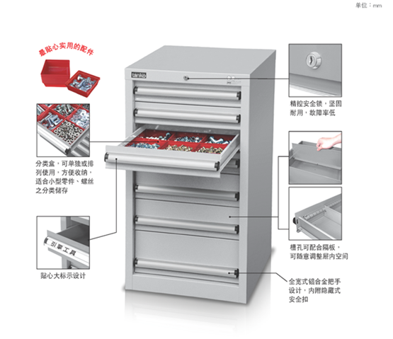 8可自由選擇配置不同高度的抽屜,充分滿足用戶的需求。