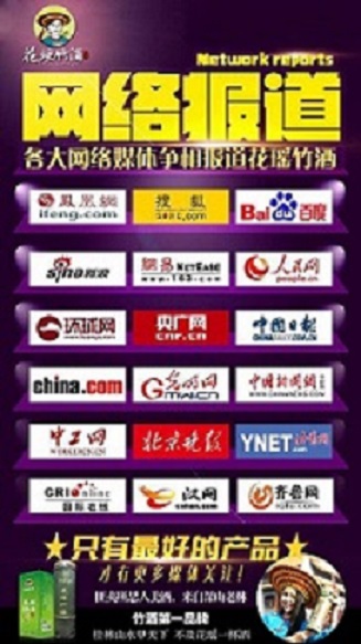 花瑤竹酒,源自深山甘泉,傳承千年古釀,竹酒第一品牌,cctv上榜品牌。報道我們的大型知名網(wǎng)絡(luò)媒體超過50家。