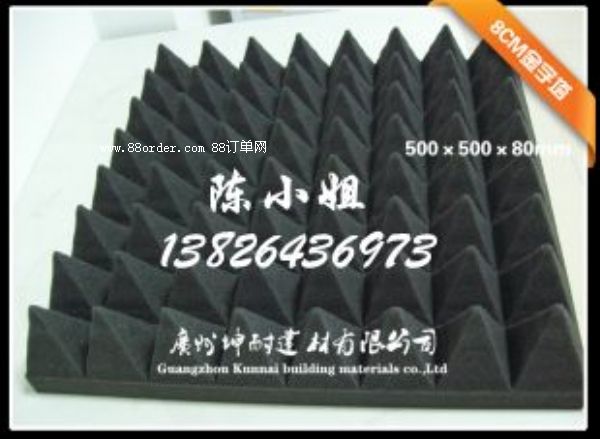 本公司大量出售“坤耐”牌吸音棉,金字塔吸音棉,保證質(zhì)量!此產(chǎn)品屬于環(huán)保吸音材料,大家可放心使用。金字塔廣泛應(yīng)用與錄音棚、錄音室、影音室、視聽(tīng)室、鼓房、ktv,測(cè)音室、語(yǔ)音室、播音室、試音室、聲學(xué)試驗(yàn)室,會(huì)議廳、演播廳、影劇院等場(chǎng)合的室內(nèi)裝飾,以及機(jī)房消音、發(fā)電機(jī)組消音、音箱等吸音消音場(chǎng)所使用。該海綿無(wú)毒、無(wú)味、環(huán)保衛(wèi)生,是理想的室內(nèi)隔音/吸音、音頻反射材料。