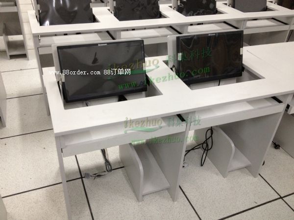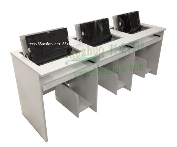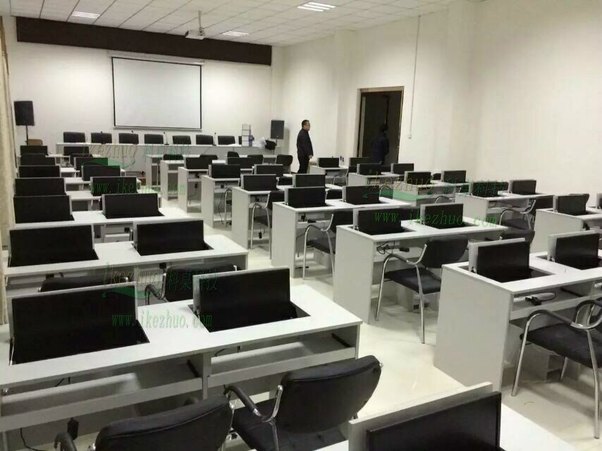 科桌翻轉(zhuǎn)電腦桌主要應(yīng)用于各種大型會(huì)議室,學(xué)術(shù)報(bào)告廳,計(jì)算機(jī)教室,多媒體教室、多媒體會(huì)議室、多媒體電子教室、多媒體電教室、機(jī)房、培訓(xùn)中心,展廳內(nèi)及多功能會(huì)議廳等。普通教室與計(jì)算機(jī)教室模式相互切換快速,不阻礙老師與學(xué)生之間目光交流當(dāng)需要使用顯示器時(shí)輕按前端桌面板隱藏在桌子內(nèi)部的顯示器會(huì)自動(dòng)從桌子下面升到桌面翻轉(zhuǎn)到合適角度。當(dāng)不使用顯示器時(shí),可手動(dòng)按下顯示器翻蓋面板至桌面平整,顯示器自動(dòng)鎖住隱藏在桌子內(nèi)與桌面保持平整一致。起到防塵,防盜,保持桌面平整美觀。使用方便,手動(dòng)控制,翻轉(zhuǎn)自如。