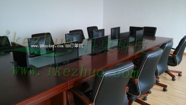 示器從會議桌下面升到桌面、當不使用顯示器時,升降機自動下降,顯示器隱藏在會議桌內(nèi),起到防塵,防盜,保持桌面