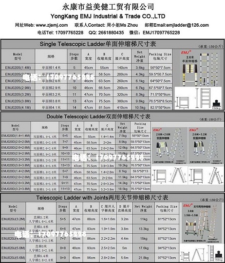 浙江省永康市益美健工貿(mào)有限公司成立于2005年,是誠信通8年會員單位,是一家專業(yè)生產(chǎn)鋁梯,鋁合金伸縮梯,多功能梯,家用梯,拖梯,閣樓梯,工作臺等,生產(chǎn)和銷售的科技型新銳企業(yè) . 我工廠有著雄厚的科研能力,有高級工程師、中級工程師、經(jīng)濟師及熟練技工上百名。我工廠生產(chǎn)的產(chǎn)品分為六大系列:一.鋁合金伸縮梯系列; 二.多功能梯系列: 三.拖梯系列: 四.工作臺系列: 五.家用梯系列: 六.閣樓梯系列: