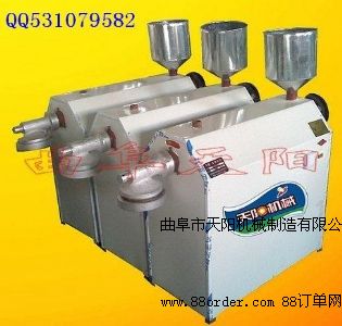粉條粉絲扁粉粉皮等是傳統(tǒng)的淀粉食品,晶瑩剔透,條形均勻,耐煮,無論是夏季涼拌,還是冬季涮火鍋,它都能吸收各種鮮美湯料的味道,口感爽滑筋道,深受人們喜愛。傳統(tǒng)加工粉條粉絲扁粉粉皮等要用熱水燙淀粉打芡后瓢漏到熱水鍋內(nèi)熟化,需要人力多,勞動強度大。天陽機械制造有限公司針對傳統(tǒng)工藝的弊端,進行了大膽設計,研制成功了替代手工生產(chǎn)粉條粉絲扁粉粉的新型機器—仿水煮式粉條機。天陽仿水煮式粉條機以電熱水套代替?zhèn)鹘y(tǒng)的熱水鍋,同時增加自動溫控儀來控制水套內(nèi)的水溫,使之保持恒定的淀粉最佳糊化溫度,以達到粉條粉絲扁粉粉的筋性和耐煮性。天陽仿水煮式粉條機采用螺旋推進器勻速將熱水套水浴煮熟的淀粉通過機頭的不同規(guī)格的模板擠出成型。天陽仿水煮式粉條機生產(chǎn)用工少(2人即可生產(chǎn)),加工成本低(每公斤加工成本在0.15元以下),產(chǎn)量高(每小時生產(chǎn)180-200公斤),出品率高(一公斤淀粉可以生產(chǎn)1-1.1公斤粉條),原料多樣化(紅薯、土豆、玉米、木薯、綠豆等淀粉單一或混合使用均可),比手工粉條成本降低接近2角。天陽仿水煮式粉條機適配動力:380V7.5KW1440轉電機,外型尺寸1400*500*1250mm,重量120公斤,價格4176元,運費根據(jù)運輸距離的遠近另外計算。天陽機械公司張杰歡迎致電13181307932 18953731698 QQ531079582咨詢 詳細內(nèi)容在百度輸入“天陽機械”直接進入我們的主網(wǎng)站查看