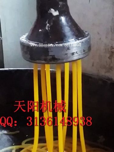 馇條又叫發(fā)酵玉米面條、玉米叉子、酸湯子,黃面條,它富含多種對(duì)人體有益的營(yíng)養(yǎng)成分,比較適合配雞肉、排骨或蔬菜等一同食用,而且其獨(dú)特的芳香酸味既賦予了食品良好的風(fēng)味,金黃色澤的馇條光滑、綿軟、勁道中還裹著淡淡的清香,大大的增進(jìn)食欲,讓人回味無(wú)窮,深受廣大老百姓的喜愛,許多經(jīng)營(yíng)這種小吃的人,投資不多,營(yíng)利可觀,生意做得紅紅火火。馇條是以玉米馇顆粒為原料,用水浸泡發(fā)酵至無(wú)硬芯后磨成細(xì)膩的玉米漿,加入馇條機(jī)中水煮熟化再擠出成型,即成為具有一定彈性的玉米面條制品。冷卻后后以蔥花、肉絲、海米、蘑菇、油鹽等佐料食之,還可以將面條煮成八分熟,撈出配上新鮮的蛤肉用猛火爆炒,稱為炒叉子。根據(jù)配料不同,有肉末炒叉子,雞蛋炒叉子。這種面條味香而微酸,吃起來(lái)滑爽有咬勁,很開胃口。如少放些辣椒或胡椒,酸辣可口,吃起來(lái)更香。天陽(yáng)水磨馇條機(jī)為機(jī)電一體化設(shè)計(jì),是借鑒傳統(tǒng)工藝研制而成的替代人工的理想的米制食品機(jī)械,由磨漿系統(tǒng)和熟化成型系統(tǒng)組成,性能穩(wěn)定,干凈衛(wèi)生,安全衛(wèi)生,操作簡(jiǎn)單,1~2人即可生產(chǎn),省時(shí)省工。天陽(yáng)水磨馇條機(jī)采用恒溫蒸漿熟化成型新工藝,磨好的玉米糊經(jīng)水浴箱熱水蒸煮熟化,螺旋推進(jìn)器推送擠壓聚合而成,出機(jī)即熟,一次成型,無(wú)須下鍋。天陽(yáng)水磨馇條機(jī)一機(jī)多用,可以使用各種淀粉或面粉生產(chǎn)加工粉條,粉絲,粉皮,扁粉,川粉,肥羊粉,河粉,卷粉(腸粉)涼皮拉皮面皮、酸漿米線、酸漿馇條等等,產(chǎn)品厚薄寬窄、粗細(xì)扁圓等規(guī)格可根據(jù)需要任意調(diào)整。水磨馇條機(jī)tyg-bm型,適配動(dòng)力220v1.5+3+3kw,產(chǎn)量50公斤/小時(shí),重量100公斤,外型尺寸1200*480*1350mm,價(jià)格普通型4800元,不銹鋼型8600元(不含主電機(jī),運(yùn)費(fèi)根據(jù)路途遠(yuǎn)近另外計(jì)算)。歡迎來(lái)電來(lái)函或登陸網(wǎng)站查閱咨詢天陽(yáng)水磨馇條機(jī)信息。電話05374483288,手機(jī)13181307932,qq3136148938 田亮 玉米富含多種營(yíng)養(yǎng)成分,可以調(diào)節(jié)人體新陳代謝,增強(qiáng)肌體抵抗力。能有效地防止現(xiàn)代人飲食精細(xì)化,魚肉、果菜等在飲食結(jié)構(gòu)中所占比例增加,飲食失調(diào),而導(dǎo)致的各種疾。ǜ毁F。R虼,重建合理飲食習(xí)慣,粗糧、雜糧、粗細(xì)搭配對(duì)健康生活有相當(dāng)意義,所以說用天陽(yáng)酸湯子機(jī)加工酸湯子錢景好,市場(chǎng)潛力大。酸湯子(又稱馇條、玉米叉子,玉米涮面)是玉米經(jīng)過天然發(fā)酵,不需任何添加劑制成的,最大特點(diǎn)是爽口、調(diào)胃、營(yíng)養(yǎng)豐富,當(dāng)腹內(nèi)生火、食欲不振時(shí),吃一碗“酸湯子”,就會(huì)五臟舒朗、食欲大開,有通脾健胃、消乏解渴的功效。制酸湯條要經(jīng)過幾道工序,先將玉米碴浸泡半月之久(根據(jù)氣溫浸泡有長(zhǎng)短),上磨磨成水面,再加入酸湯子機(jī)通過電熱電子自動(dòng)控溫煮漿熟化,再擠壓成條。
