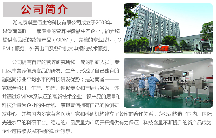 湖南康琪壹佰可為客戶量身打造各類植物固體飲品、保健品片劑、膠囊,瑪咖片等代加工服務,國內專業(yè)生產保健品、固體飲品加工廠。廠家擁有進口設備,gmp認證廠家,十萬級車間,強大研發(fā)團隊,為您提供成熟的配方,成本低,品質一流。歡迎到場考察,本公司有資深的技術人員設計產品配方工藝,并有多種規(guī)格、口味、品種供客戶選擇,誠信經營,品質保證,價格合理,歡迎來電咨詢。