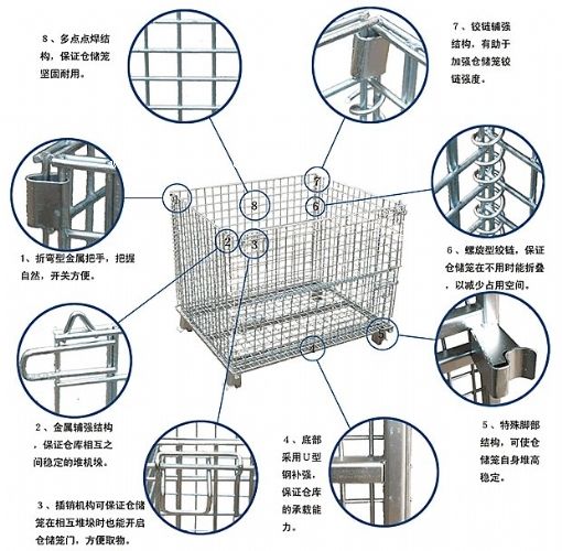 相互之間穩(wěn)定的堆垛。 2、多點點焊結(jié)構(gòu)保證倉儲籠堅固耐用。 3、鉸鏈輔強結(jié)構(gòu),有助于加強