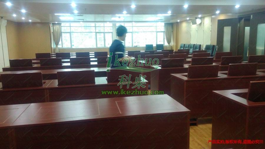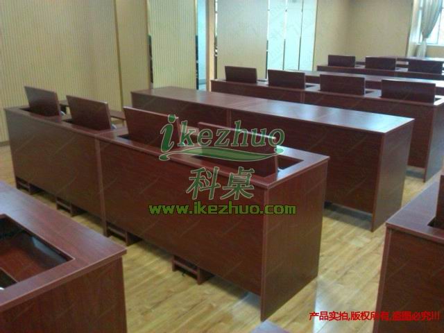 科桌 翻轉(zhuǎn)電腦桌主要應(yīng)用于各種大型會議室,學(xué)術(shù)報告廳,計算機(jī)教室,多媒體教室、多媒體會議室、多媒體電子教室、多媒體電教室、機(jī)房、培訓(xùn)中心,展廳內(nèi)及多功能會議廳等。普通教室與計算機(jī)教室模式相互切換快速,不阻礙老師與學(xué)生之間目光交流,當(dāng)需要使用顯示器時輕按前端桌面板隱藏在桌子內(nèi)部的顯示器會自動從桌子下面升到桌面翻轉(zhuǎn)到合適角度。當(dāng)不使用顯示器時,可手動按下顯示器翻蓋面板至桌面平整,顯示器自動鎖住隱藏在桌子內(nèi)與桌面保持平整一致。起到防塵,防盜,保持桌面平整美觀。使用方便,手動控制,翻轉(zhuǎn)自如。