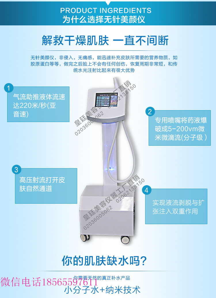 無針?biāo)獠捎秘?fù)壓吸引力淺導(dǎo)、深導(dǎo)技術(shù),讓皮膚快速恢復(fù)自體生成?原蛋白的能力,在真皮層深下定點、定位、定層、定量注入美容材料,建立營養(yǎng)倉庫,平鋪后令真皮膠原源源不斷地大量快速生成,真皮膠原層增厚,表皮真皮連接更緊密。即時塑型、緊致提升、撫平皺紋,明顯改善膚質(zhì)色,營養(yǎng)皮膚,顯著控制衰老!