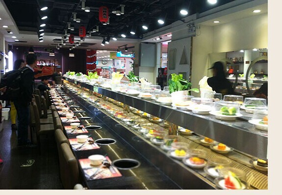 輸送鏈帶結(jié)構(gòu)嚴(yán)謹(jǐn),運(yùn)行安全平靜,符合食品衛(wèi)生要求;2)節(jié)省人力物力:客人在各自的座位上可隨意選擇擺放在輸送帶上的食品,無(wú)需服務(wù)員送上,本機(jī)以抬架代替餐桌,可節(jié)省大量餐桌及臺(tái)布;