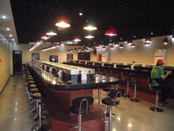食客在各自的座位上可隨意選擇擺放在輸送帶上的食品,無需服務(wù)員送上,本機以臺架代替餐桌,可節(jié)省大量餐桌及臺布。3、餐點再旋轉(zhuǎn)中運用明亮的燈光及輸送帶的移動讓餐點變的更可口,