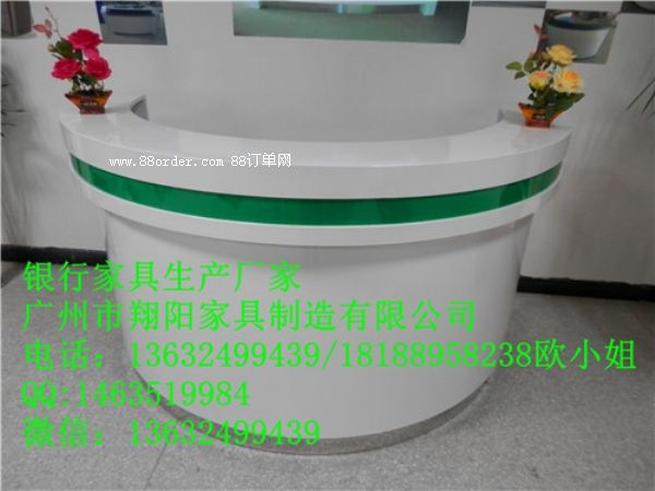 材質(zhì):白色人造石臺面,配農(nóng)行綠色亞克力裝飾邊,白色烤漆臺身,淺灰色免漆板內(nèi)鋪臺,拉絲不銹鋼底座